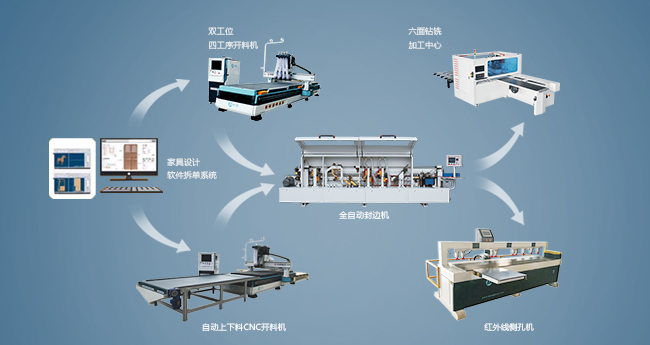 3)数控开料机(软件)+全自动双修封边机+六面钻/五面钻