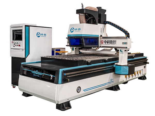 1.搭载9KW大功率开料主轴,针对木门加工中心、衣柜门、橱柜门、实木板、刨花板、多层板、密度板具备开料轻巧、噪音低、平滑特点,配备12把无级变速私服刀库,依托Alohcam柜门软件,做豪华模压门雕刻造型堪称完美。