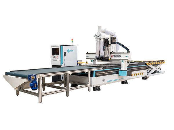 全自动上下料数控加工中心适用于定制板式家具、橱柜、衣柜、办公家具的生产制造。具备自动上下料、自动换刀、自动贴标、钻孔、开槽、铣型、开料等复合加工功能。